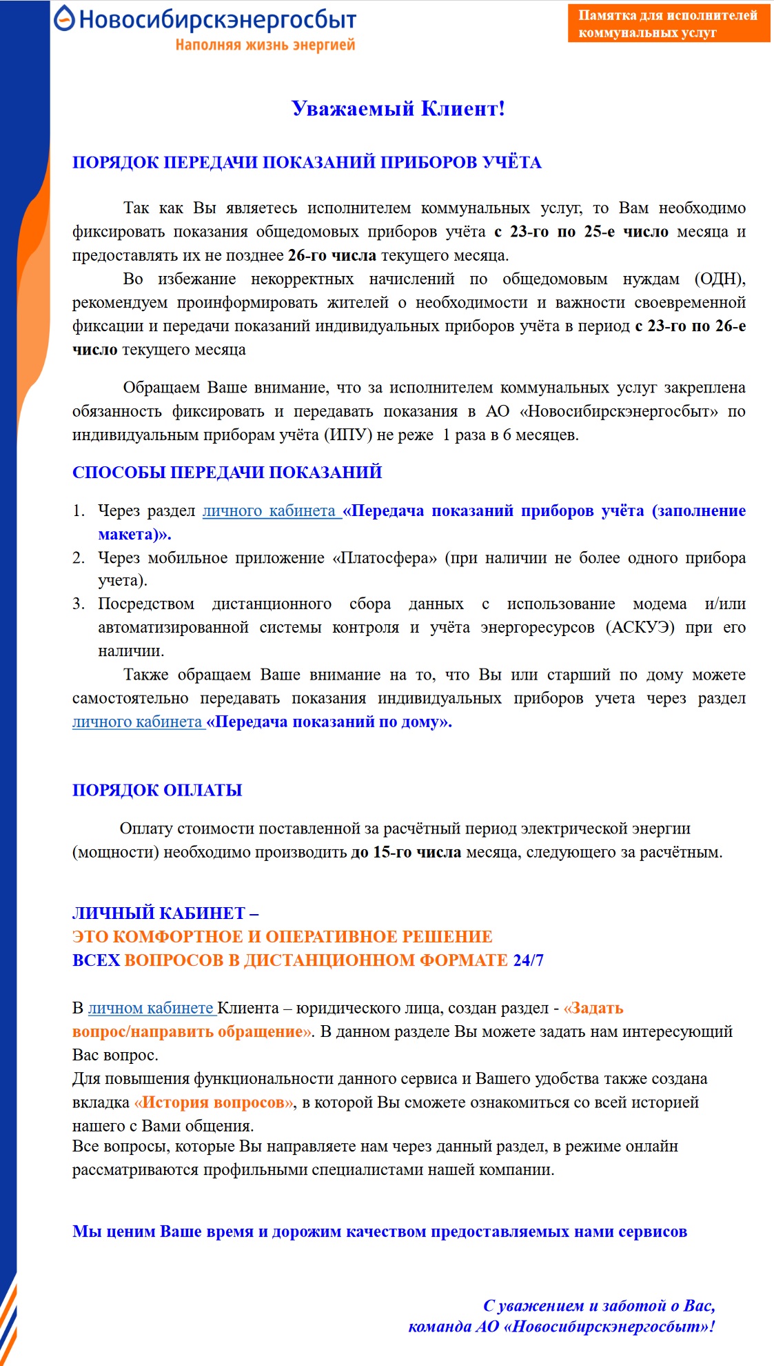 Cпособы передачи показаний