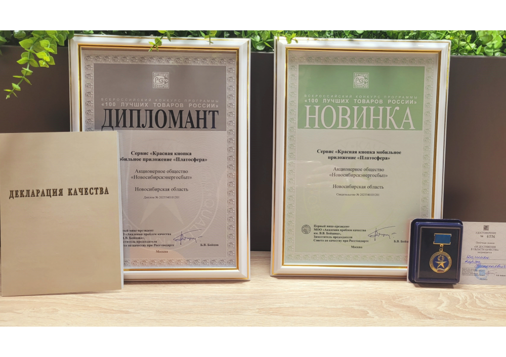 Дипломант Всероссийского конкурса программы «100 лучших товаров России» за создание сервиса «Красная кнопка» в мобильном приложении «Платосфера»