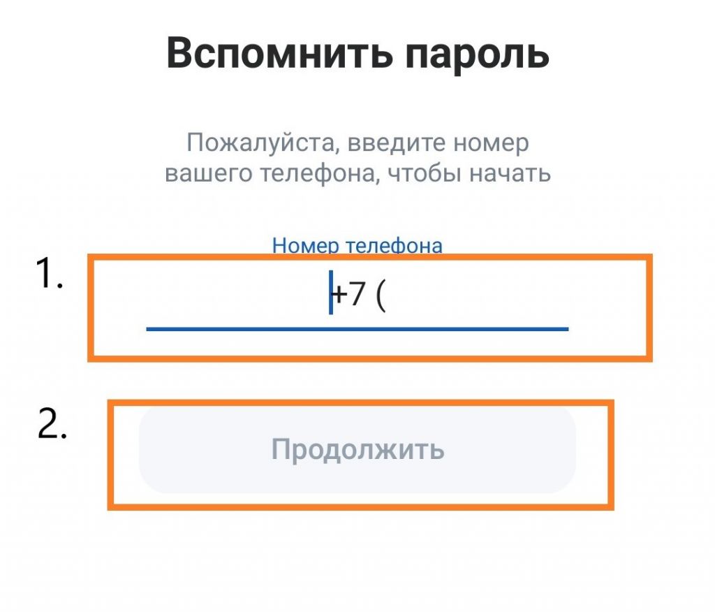 Далее Вам необходимо ввести номер телефона, к которому был привязан аккаунт и нажать "Продолжить".